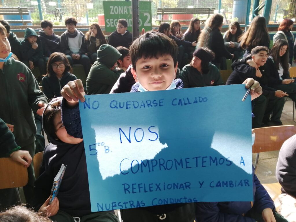 El día miércoles 2 de agosto la comunidad escolar del Instituto Padre Hurtado de Huechuraba pausa sus actividades académicas para realizar una jornada reflexiva, en donde los y las estudiantes desde Pre-kinder a 8vo año básico participan con el objetivo de reflexionar sobre acoso y abuso escolar que impacta a nuestro país.