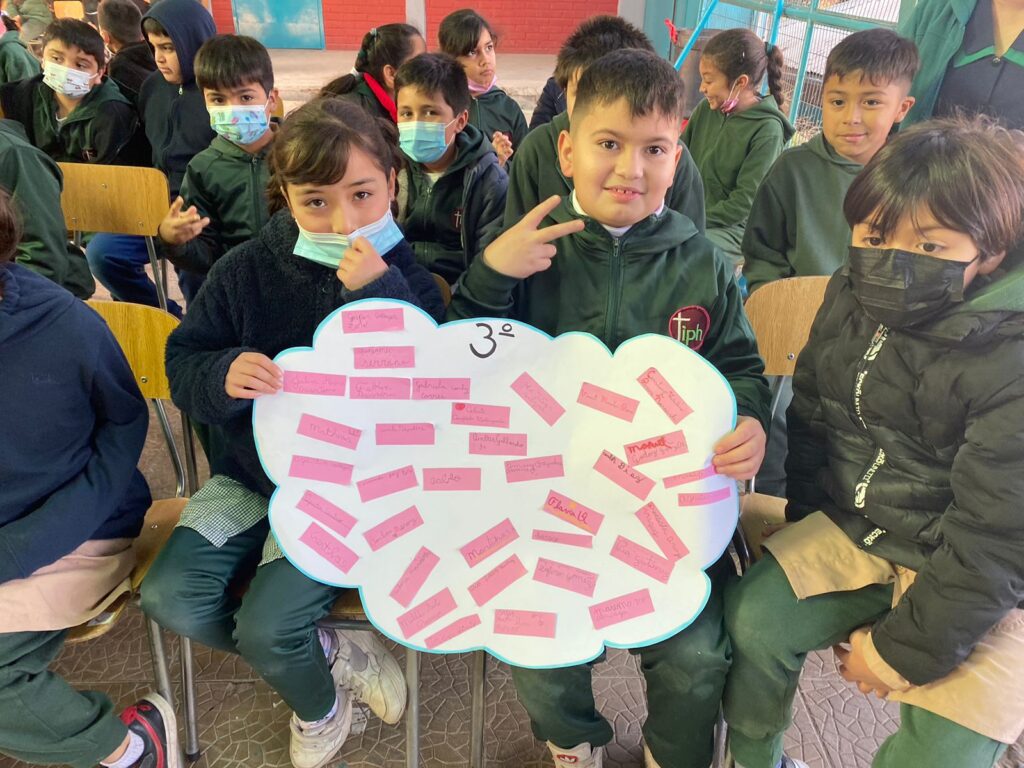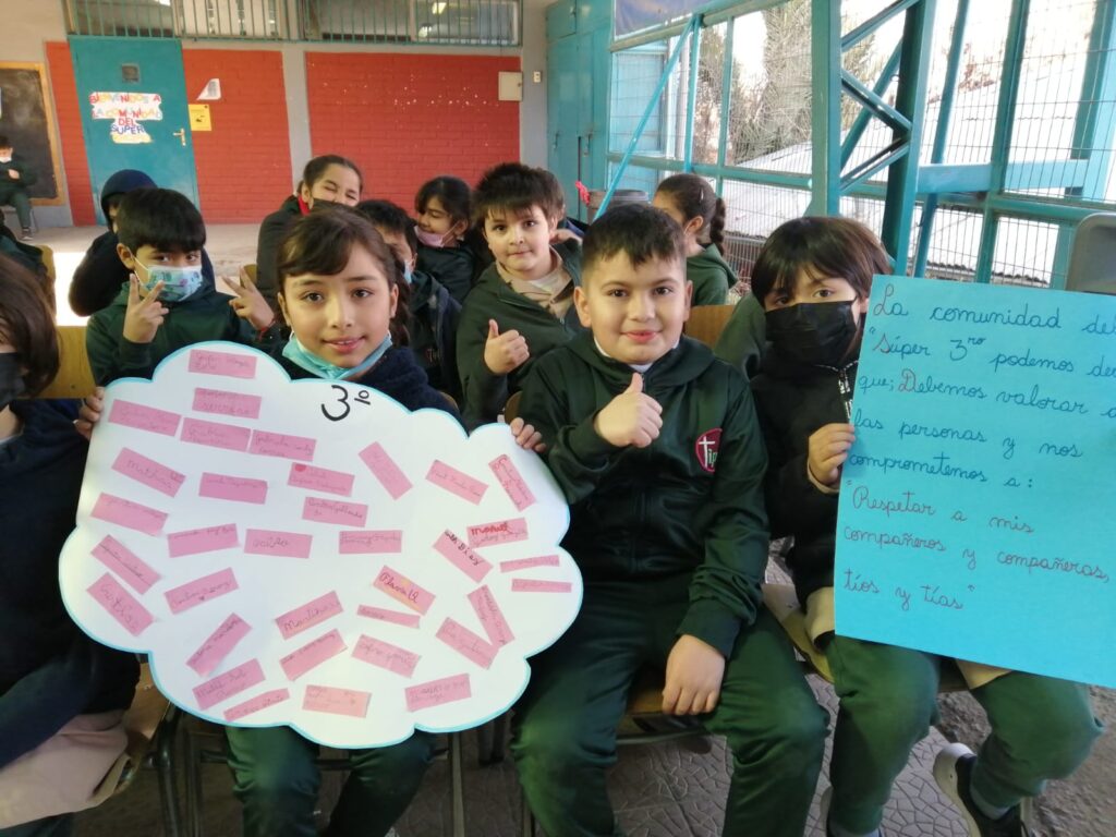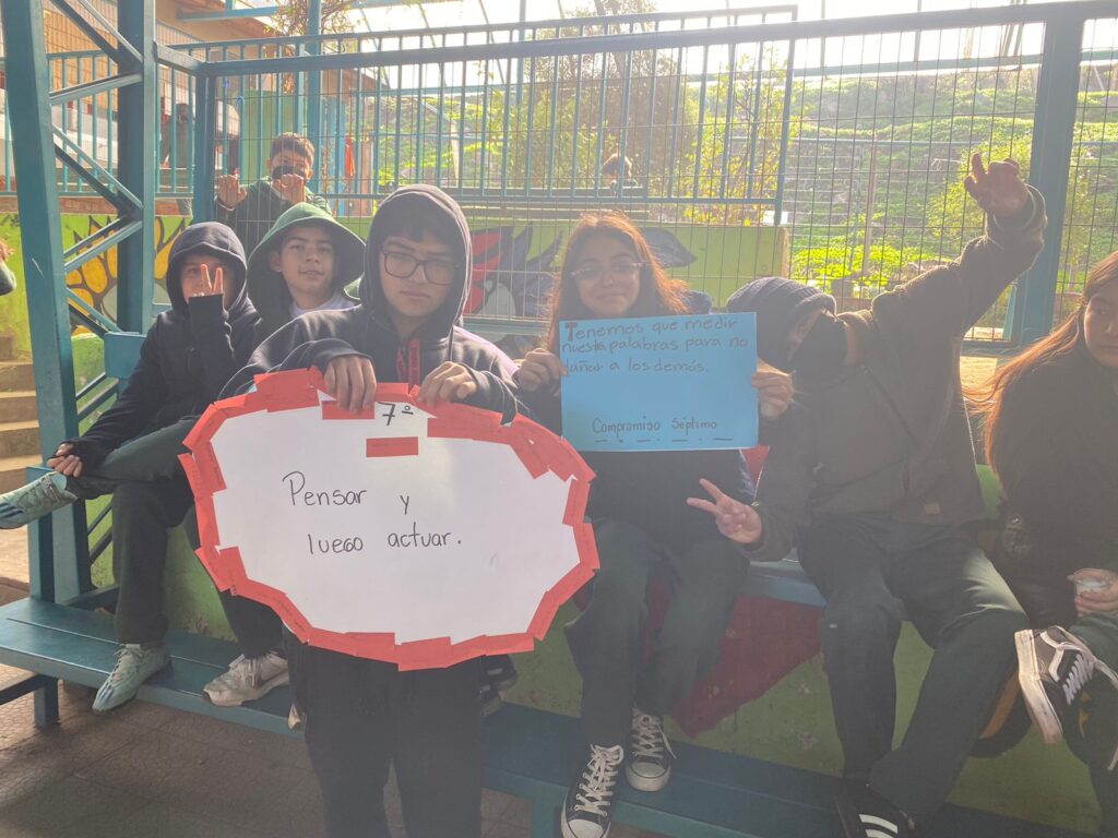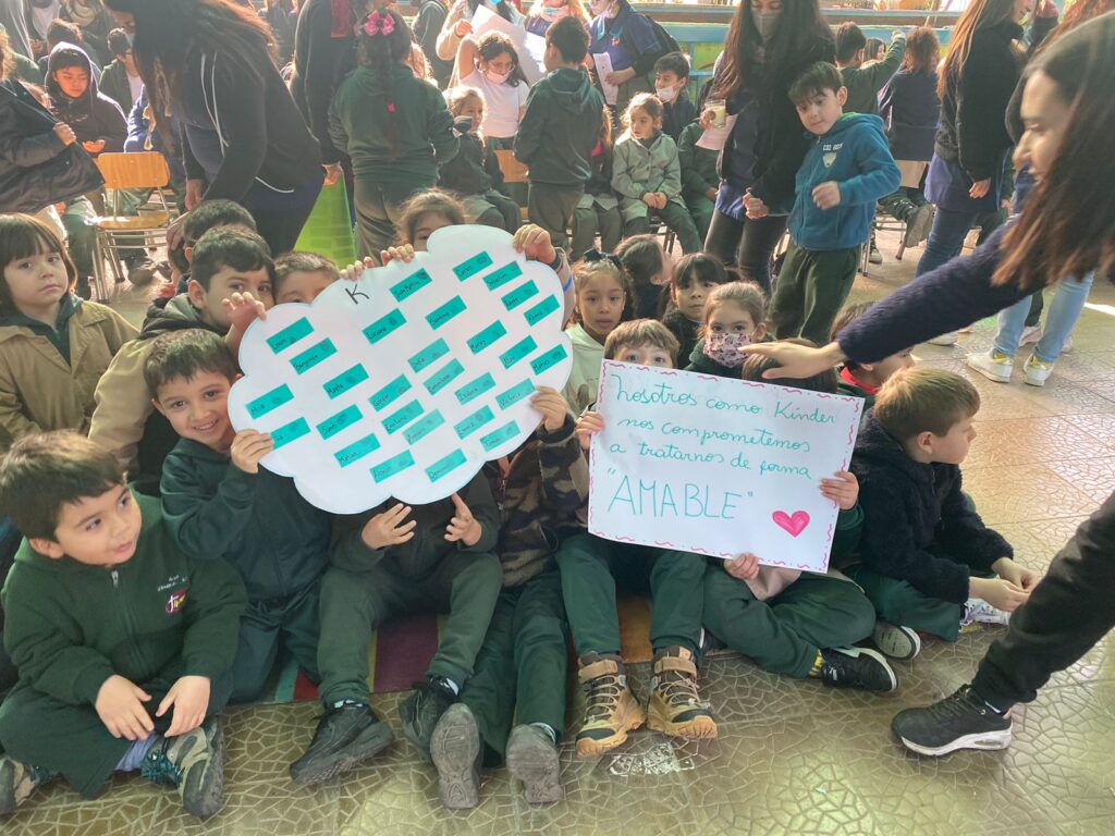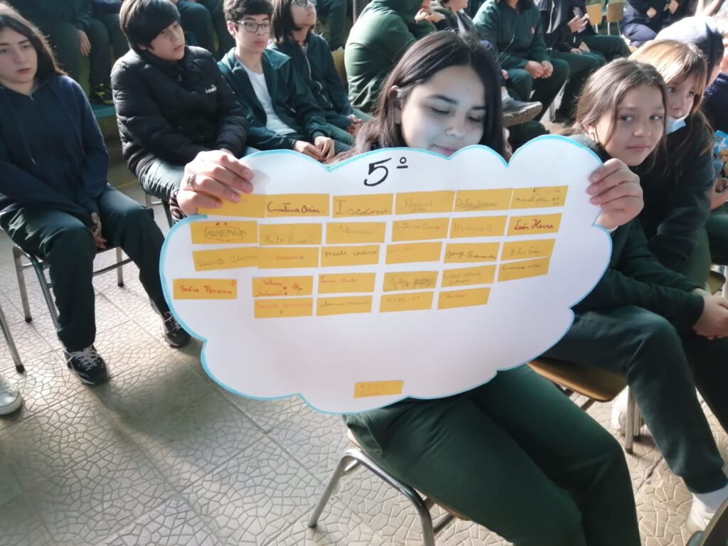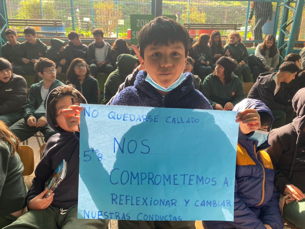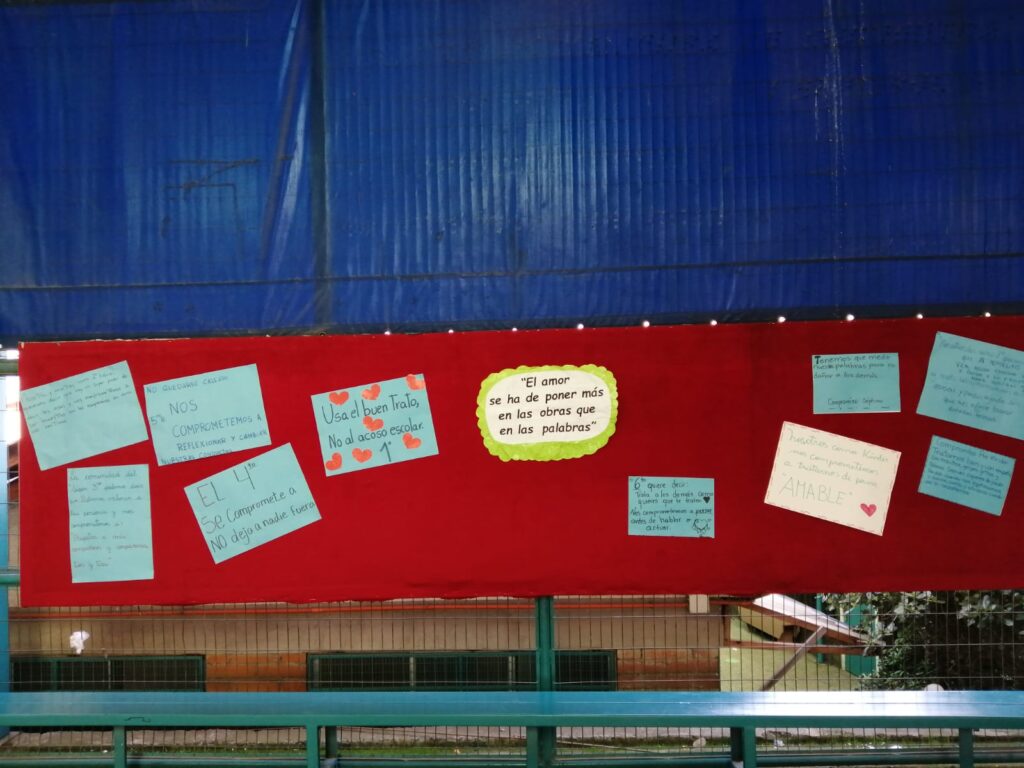 En la jornada cada curso realiza un conversatorio y construye un mensaje de cómo se puede aportar para generar un clima de buen trato y convivencia dentro de la sala de clases y en la comunidad escolar, dejando plasmados compromisos que se puedan llevar a cabo en el día a día.